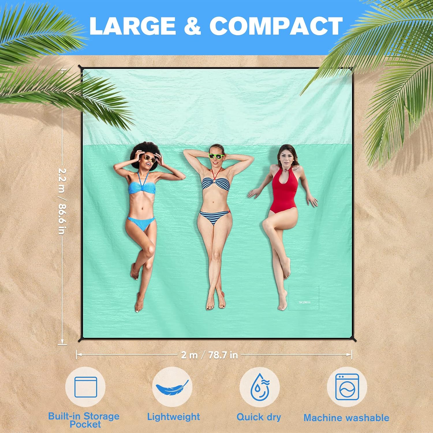 Made from durable and quick-drying nylon material, this beach mat is perfect for travel, camping, hiking, and of course, beach days. The waterproof and sandproof design ensures that you stay clean and comfortable no matter where your adventures take you.