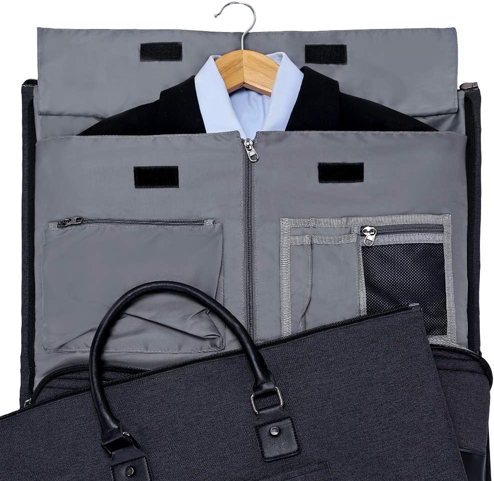 Convertible Garment Bag with Toiletry Bag, Carry On Garment Duffel Bag for Men Women Travel, Multi-Function Suit Bag 2 in 1 Hanging Suitcase, Black