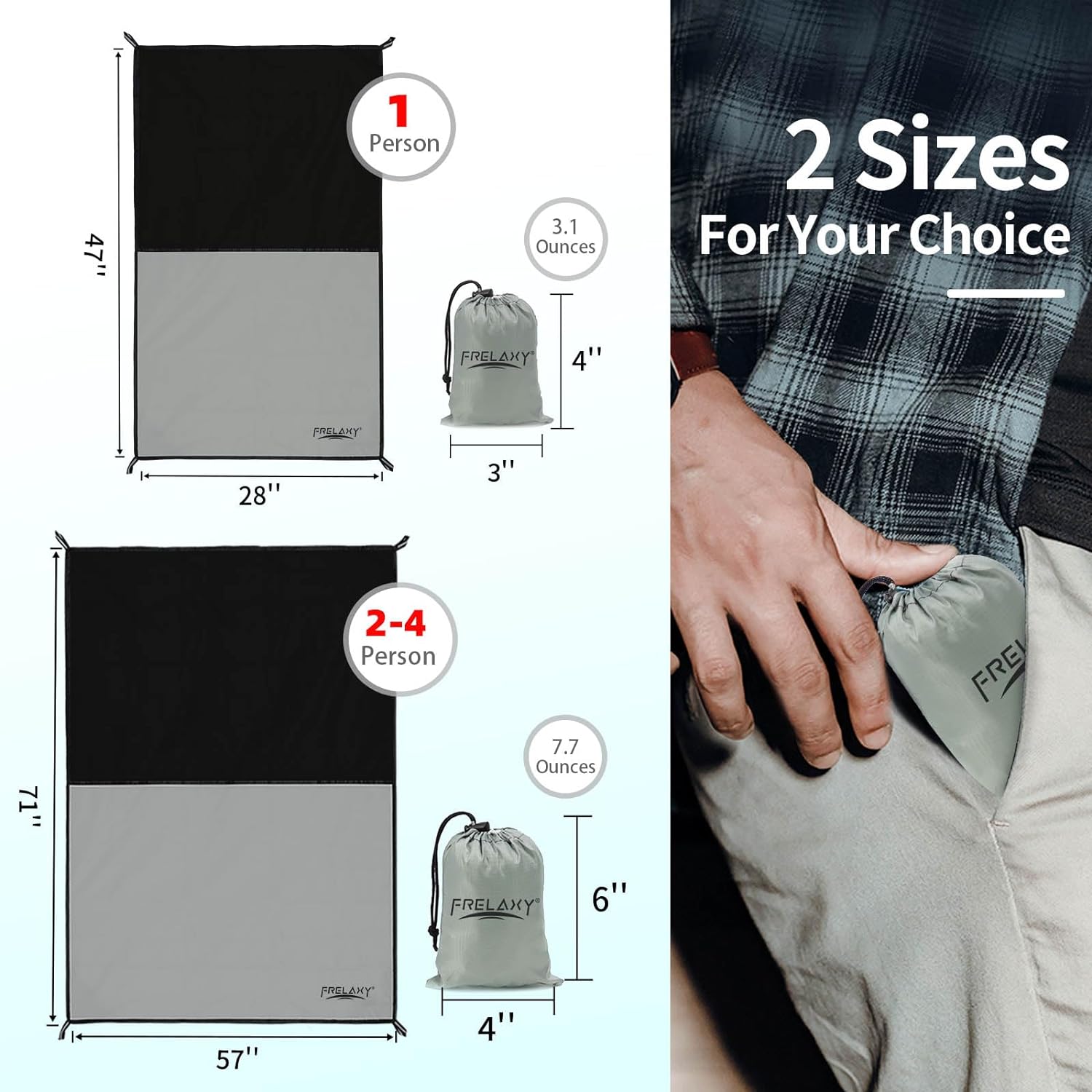 Frelaxy Pocket Picnic Blanket, Waterproof Beach Blanket, Compact Camping Blanket, Lightweight Outdoor Blanket for Beach Festival Camp Picnic Hiking Travel (Grey, 28” x 47”)